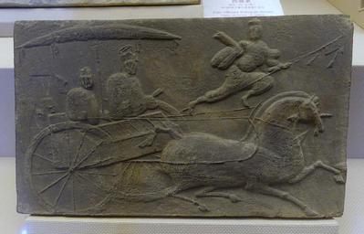 Keywords: Guiding carriage, China, unearthed at Taiping, Pengzhou City, Eastern Han dynasty, 25-220 AD, tomb tile - Sichuan Provincial Museum - Chengdu, China - DSC04818.jpg en Exhibit in the Sichuan Provincial Museum 四 博物院 also known as the Sichuan Museum 251 Huanhua S Road Chengdu Sichuan China Photography was permitted in the museum without restriction This work is old enough so that it is in the public domain 2015-09-24 03 52 49 own Daderot other versions PD-old-100 cc-zero Tomb bricks of the Eastern Han Dynasty in the Sichuan Provincial Museum Carriages of the Eastern Han Dynasty |
