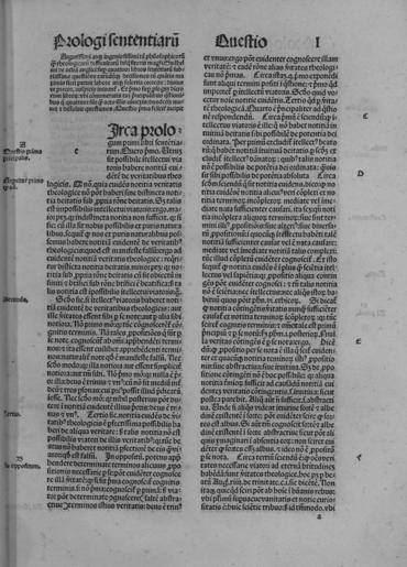 | Keywords: Guillelmus - Quaestiones in quattuor libros sententiarum - 4417303 Carta 25r.tif Book Guillelmus de Occam Quaestiones in quattuor libros sententiarum lat it Argutissimi atque ingeniosissimi magistri Guilhelmi de Ockam Super quattuor libros sententiarum subtilissime questiones earundemque decisiones cum quantis maximis fieri potuit labore atque solertia correcte - S l s n s d Lugduni diligenter impressi per m Johannem Trechsel 1495 die vero nono nouembris - 454 c ; 2° - ISTC io00015000 -A c 2A1r incipit del Centilogium Theologicum - Segn a-2h8 A-H8 I6 K-P8 Q6 R-V8 X10 2A-2B8 Liber primus BEIC 4417303 Institution BEIC PD-old-100-1923 Teologia - Sec 13 -14 Religious texts |