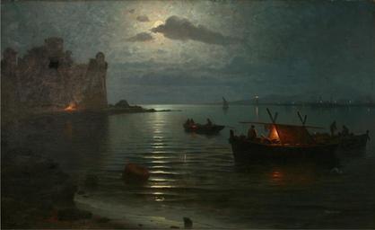 Keywords: Guillermo Gómez Gil - Efecto de luna en Bayona (ca.1897).jpg Artwork Creator Guillermo Gómez Gil 1897 oil canvas cm 100 163 http //www liveauctioneers com/item/10359029 liveauctioneers com object history sold at Schmidt Kunstauktionen Dresden 2011 12 03 Lot 13 as žEfecto de luna en Bayona credit line G Gomez Gil ~ lower left signature Efecto de luna en Bayona ~ lower right title accession number http //www bruun-rasmussen dk/search do pg 1 q gil iid 300369965 mode detail Bruun Rasmussen 2011 03 09 lot 1000 as žCoastal scene from Málaga with a castleruin and fishermen PD-old-auto-1923 1942 Guillermo Gómez Gil Oil paintings of seascapes Landscape paintings of France 1890s landscape paintings Bayonne 1897 paintings Night in seascape paintings |