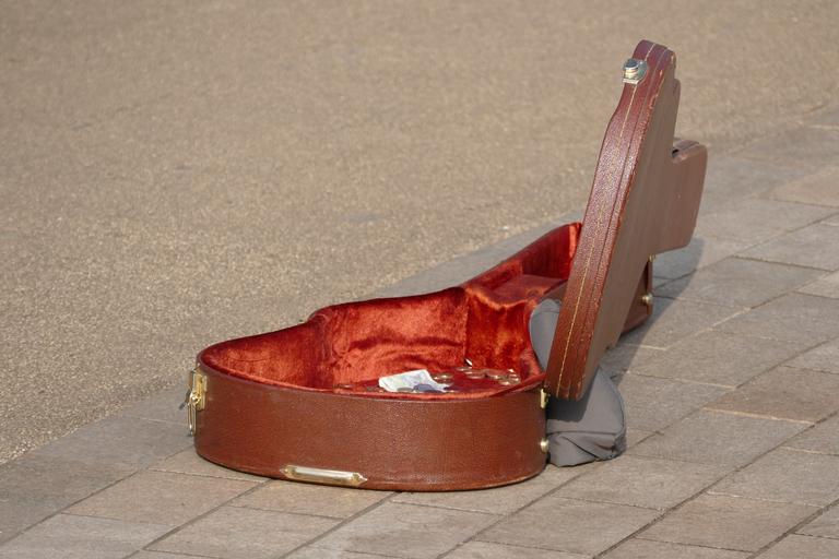 Keywords: guitar case instrument music guitarist outdoors lifestyle musical musician equipment busking busker
