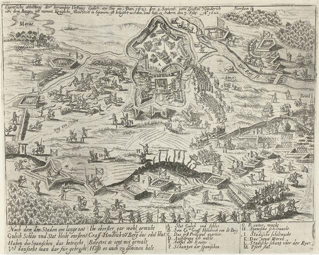 Keywords: Gulik 1622.JPG en Siege and capture of Julich by Hendrik van den Bergh in 1622 nl Beleg en verovering van Gulik door het Spaanse leger onder graaf Hendrik van den Bergh 1621-1622 Plan van de stad met het kasteel in het omliggende land Met oprukkende en terugtrekkende legers https //www rijksmuseum nl/en/search/objecten q Gulik+1622 p 1 ps 12 ii 1 /RP-P-OB-80 979 1 rijksmuseum nl author 1621 1622 PD-art-100 Siege of Jülich 1622 Jülich Conflicts in 1622 17th-century fortress plans Duchy of Jülich Prints in the Rijksmuseum Amsterdam |