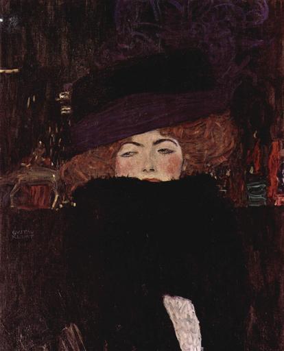 | Keywords: Gustav Klimt 009.jpg Artwork title de Dame mit Hut und Federboa oil canvas cm 69 55 Belvedere de Wiener Sezession Yorck 1909 creator Gustav Klimt http //mail wikipedia org/pipermail/wikide-l/2005-April/012195 html Other versions 1909 paintings Paintings by Klimt in the Österreichische Galerie Belvedere Hats in art 1900s paintings by Gustav Klimt PD-old-70 PD-Art-YorckProject |