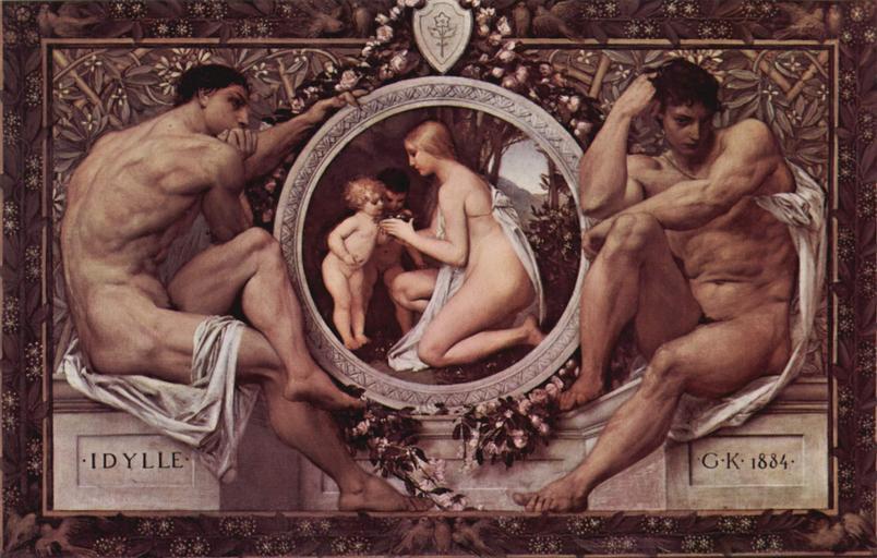| Keywords: Gustav Klimt 037.jpg Artwork title Idil·li Idyll Idyll Idilio Idylle Idillio Idylle Idílio oil on canvas cm 49 5 73 5 Idyll title lower left G K 1884 monogram/date lower right Wien Museum de Wiener Sezession Yorck 1884 Creator Gustav Klimt http //mail wikipedia org/pipermail/wikide-l/2005-April/012195 html Other versions 1884 paintings Paintings of nude males Paintings of nude females Paintings by Gustav Klimt Paintings of women by Gustav Klimt Vienna Jugendstil PD-old-70 PD-Art-YorckProject |