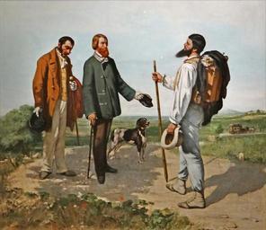 Keywords: Gustave Courbet (Bohèmes, Grand Palais) (8164920037).jpg Artwork Creator Gustave Courbet fr La rencontre de Die Begegnung 1854 Oil on canvas Size cm 132 150 Institution Musée Fabre Montpellier Hilaire Michel; Amic Sylvain 2004 Bonjour Monsieur Courbet the Bruyas collection from the Musée Fabre Montpellier Réunion des musées nationaux ISBN 978-0-300-10523-0 http //museefabre montpellier-agglo com/pdf php/ filePath var/storage/original/application/695abfa327a95f27b6fe82b58baf3f4f La rencontre Musée Fabre object history exhibition history credit line Don d'Alfred Bruyas 1868 This painting is also known as Bonjour Monsieur Courbet accession number Inv 168 1 23 Source http //www flickr com/photos/dalbera/8164920037/ Gustave Courbet Bohèmes Grand Palais Photographer http //www flickr com/people/72746018 N00 Jean-Pierre Dalbéra Date of the photograph 2012 11 07 18 49 Taken at the exhibition Bohèmes au Grand Palais Galeries nationales http //www grandpalais fr/grandformat/exposition/bohemes/ www grandpalais fr/grandformat/exposition/bohemes/ 50px 48 865935 2 31238 source Flickr PD-old-100-1923 PD-1923 Cc-by-2 0 File Upload Bot Magnus Manske 2013-02-15 Oil paintings Paintings of men of France Realist paintings of men Paintings by Gustave Courbet in the Musée Fabre Alfred Bruyas 1850s fashion Walking in art 1854 paintings Self-portraits by Gustave Courbet Self-portraits in group People with staffs in art Exhibitions at the Grand Palais Bohemes Photographs by Jean-Pierre Dalbéra Files uploaded by Russavia |
