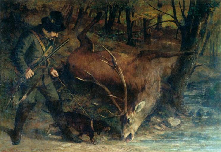 | Keywords: Gustave Courbet - The German Huntsman - WGA05471.jpg  Artwork 1859 Oil on canvas size cm 120 177 Institution Musée des Beaux-Arts Lons-le-Saunier object history credit line accession number WGA link 5471 http //www wga hu/art/c/courbet/1/courb116 jpg http //www wga hu/html/c/courbet/1/courb116 html PD-old-100 painting genre French 1851-1900 Paintings of animals by Gustave Courbet Musée des Beaux-Arts de Lons-le-Saunier 1859 paintings WGA form painting WGA type genre WGA School French WGA time period 1851-1900 1850s paintings from France |
