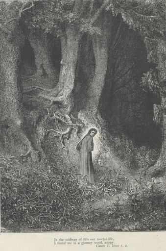 | Keywords: Gustave Dore Inferno1.jpg Dante finds himself lost in a gloomy wood from Canto 1 of the Divine Comedy Inferno illustrated by Paul Gustave Doré 1832-1883 The caption reads 'In the midway of this our mortal life I found me in a gloomy wood astray' Canto 1 lines 1 2 Source http //www gutenberg org/dirs/8/7/7/8779/8779-h/images/01-002b jpg Reference http //www gutenberg org/dirs/8/7/7/8779/8779-h/8779-h htm PD-old Inferno Canto 01 Gustave Doré - Inferno | ||||