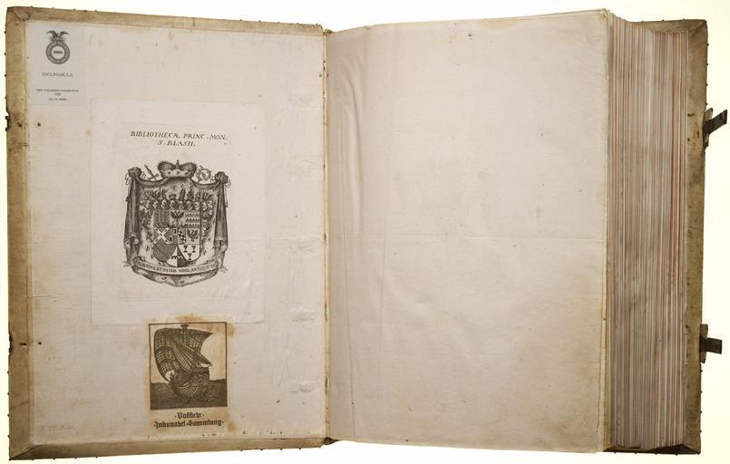 | Keywords: Gutenberg Bible WDL7782.jpg Artwork ru Гутенбе г Иоганн 1397 -1468 гг fr Gutenberg Johann 1397 - 1468 en Gutenberg Johann 1397 -1468 zh 古腾堡,约翰,1397?-1468年 pt Gutenberg Johann 1397 -1468 ar غوتنبرغ، يوهانيس،1397؟ - 1468 es Gutenberg Johann 1397 -1468 ru Библия Гутенбе га fr La Bible de Gutenberg en Gutenberg Bible zh 古腾堡 经 pt A Bíblia de Gutenberg ar طبعة غوتنبرغ للكتاب المقدس ru Библия Гутенбе га является пе вой значительной книгой в Западной Ев опе кото ая была напечатана с использованием азбо ного металлического ш ифта Она является памятником знаменующим пово отный момент в искусстве книгопечатания и в пе еходе от с едневековья к сов еменному ми у Печать Библии была осуществлена в айнце в Ге мании ве оятно в конце 1455 г Иоганн Гутенбе г живший п име но с 1397 по 1468 г обычно считается изоб етателем п оцесса изготовления унифици ованных взаимозаменяемых металлических лите аз аботавшим мате иалы и методы обеспечивающие возможность печати Эта Библия напечатанная благо одным готическим ш ифтом с четким оттиском на ст анице п изнана шедев ом изящной печати и художественного масте ства Текст п едставляет собой латинский пе евод известный как Вульгата сделанный Св Ие онимом в IV веке Библия полностью напечатана в две колонки большей частью по 42 ст очки на ст анице П описные буквы и заголовки имеют цветные ук ашения выполненные в учную Т и тома в пе еплетах из белой свиной кожи дати уемых XVI в Экземпля Библиотеки Конг есса полностью напечатан на велене тонком пе гаменте изготовленном из шку животных и является одним из всего лишь т ех хо ошо сох анившихся пе гаментных экземпля ов о существовании кото ых известно в настоящее в емя Д угие экземпля ы находятся в ациональной библиотеке Ф анции и в Б итанской библиотеке В течение почти пяти веков Библия п инадлежала Бенедиктинскому о дену и х анилась в аббатстве Св Власия в Шва цвальде в Ге мании а после 1809 г в аббатстве Св Павла в Ка интии в Авст ии Экслиб ис аббатства Св Власия имеется в каждом томе а яду с д угими книгами XV века Библия была п иоб етена Библиотекой Конг есса у д- а Отто Х Ф Воллбег а в соответствии с законом п инятым Конг ессом в 1930 г <br>Библия; Библия Гутенбе га fr La Bible de Gutenberg est le premier livre notable imprimé en Europe occidentale au moyen de caractères métalliques mobiles C'est un monument qui marque un tournant dans l'art de la reliure ainsi qu'une transition du Moyen Âge au monde moderne L'impression de la Bible s'effectua à Mayence en Allemagne et s'acheva probablement vers la fin de l'année 1455 Johannes Gutenberg qui vécut de 1397 à 1468 environ est généralement considéré comme l'inventeur du processus de fabrication des caractères métalliques mobiles uniformes et interchangeables et le développeur des matériels et méthodes ayant permis la naissance de l'impression Grâce à ses nobles caractères gothiques richement imprimés cette bible est reconnue comme un chef-d'œuvre d'artisanat et d'impression de qualité Le texte est la traduction latine connue sous le nom de la Vulgate effectuée par saint Jérôme au IV<sup>e</sup> siècle La Bible est entièrement imprimée en double colonnes et les pages sont majoritairement constituées de 42 lignes Les lettres majuscules et les titres sont ornés en couleur à la main Les trois volumes présentent des reliures en cuir de porc blanc datant du XVI<sup>e</sup> siècle L'exemplaire de la Bibliothèque du Congrès est entièrement imprimé sur vélin un fin parchemin en peau animale et est l'un des trois seuls exemplaires parfaits sur vélin dont l'existence est connue Les deux autres se trouvent à la Bibliothèque nationale de France et à la British Library Pendant près de cinq siècles la Bible fut en possession de l'Ordre bénédictin et conservée à l'abbaye de Saint-Blaise en Forêt-Noire allemande puis après 1809 à l'abbaye de Saint-Paul en Carinthie en Autriche Les ex-libris de l'abbaye de Saint-Blaise apparaissent dans chaque volume La Bible ainsi que d'autres livres du XV<sup>e</sup> siècle fut achetée pour la Bibliothèque du Congrès au Dr Otto H F Vollbehr par une loi du Congrès en 1930 <br>Bible; Bible de Gutenberg en The Gutenberg Bible is the first great book printed in Western Europe from movable metal type It is a monument that marks a turning point in the art of bookmaking and in the transition from the Middle Ages to the modern world The Bible was completed in Mainz Germany probably in late 1455 Johann