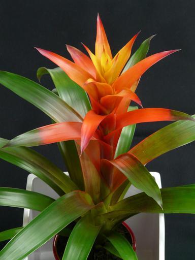 Keywords: guzmania flower blossom bloom bromeliaceae ornamental plant houseplant yellow orange red