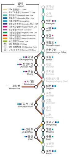 | Keywords: Gyeongbu KTX Route 20101101.svg en Route linemap of Gyeongbu KTX Based on November 1 2010 ko 경 고속철도 계통 경 도 2010년 11월 1 기 ja 京 高 鉄道(京 線KTX)の経路図 2010年11 1日基準 own Chugun 2010-11-19 Legend ; 정차역 / Marks on stop / 車駅 <span style color 312783; > </span> 전 구간 고속선 경 / Route via Gyeongbu HSR All / 全区間高 線経由 <span style color 009FE3; > </span> 울- 전 기존선 경 / Route via Gyeongbu HSR Except Seoul-Daejeon / ソウル-大田 線経由 <span style color 009A93; > </span> 동 구- 산 기존선 경 / Route via Gyeongbu HSR Except Dongdaegu-Busan / 大邱- 山 線経由 <span style color E8308A; > </span> 호남고속철도 / Honam KTX / 湖南線KTX Rail transport maps of Asia Korea Train Express Gyeongbu Line |
