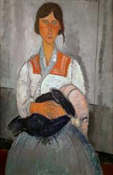 Keywords: Gypsy Woman with Baby by Amedeo Modigliani (4987906999).jpg Gypsy Woman with Baby 1919 by Amedeo Modigliani oil on canvas Maud Dale was a staunch supporter of the art of Amedeo Modigliani She organized exhibitions featuring his work and published one of the very first monographs on the artist in 1929 The Dales eventually collected 21 of the artist's works to form what contemporaries considered to be the finest selection of his oeuvre in existence Thirteen of these works are now in the collection of the National Gallery of Art http //www nga gov/fcgi-bin/tinfo_f object 46649 www nga gov/fcgi-bin/tinfo_f object 46649 https //www flickr com/photos/nostri-imago/4987906999/ Gypsy Woman with Baby by Amedeo Modigliani 2010-09-05 04 04 https //www flickr com/people/28567825 N03 Cliff from Arlington Virginia USA <gallery>Amedeo Modigliani - Gypsy Woman with Baby 1919 jpg</gallery> cc-by-2 0 cliff1066 „¢ http //flickr com/photos/28567825 N03/4987906999 2015-06-13 12 50 57 cc-by-2 0 PD-old-auto-1923 1920 DEFAULTSORT Modigliani Amedeo; Gypsy Woman with Baby 1919; National Gallery of Art Chester Dale Collection Gypsy Woman with Baby |