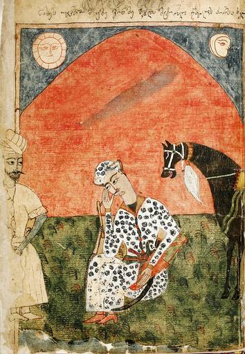 Keywords: H599, tavaqarashviliseuli vefxistkasoani, naxes ucxo mokme vinme..., 15v.jpg en naxes ucxo mokme vinme A miniature by Mamuka Tavakalashvili from the manuscript of Shota Rustaveli's Knight in the Panther's Skin H599 15v National Center of Manuscripts Tbilisi Georgia ka แ แแฎแแก แฃแชแฎแ แแ แงแแ แแแ แแ แแแคแฎแแกแขแงแแ แกแแ แ แแแแแฅแแ แแจแแแแแกแแฃแแ แ แฃแกแฎแ 1646 แฌ H 599 http //www flickr com/photos/36292139 N03/3351129602/sizes/l/in/photostream/ Machavariani H Aleksidze Z The Decoration of Georgian Manuscripts Tbilisi 1990 creator Mamuka Tavakalashvili 1646 The Knight in the Panther's Skin by Mamuka Tavakalashvili Georgia in the 17th century PD-art-100 |