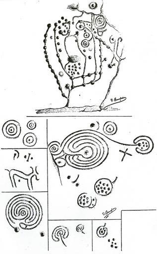 Keywords: H Campo Galicia the Switzerland of Spain 1909.jpg gl Debuxo de Henrique Campo reproducido no libro Galicia the Switzerland of Spain 1909 de Annette M B Meakin co título Prehistoric writing discovered on boulders near the town of Pontevedra in 1907 Galicia the Switzerland of Spain 1909 de Annette M B Meakin 1909 Henrique Campo Sobrino 1890-1911 PD-old Petroglyphs in Pontevedra Henrique Campo Sobrino |