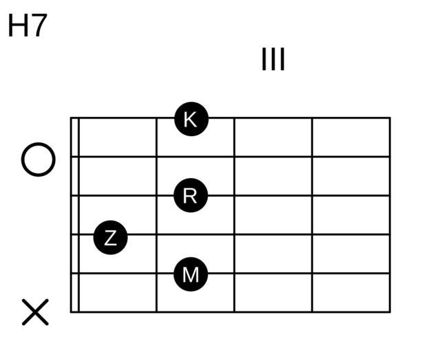 Keywords: H-Dur-7.svg Guitar Accord H-7 Own 2007-03-03 Stefan Ott Guitar chords in standard tuning B major