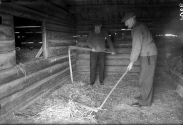 Keywords: jordbruk kultur kulturminner landbruk mennesker museer verktøy og redskaper verktøyogredskaper sliul oppland norge nor monochrome blackandwhite black and white To menn tresker. Fra Hadeland Folkemuseum. To menn tresker. Fra Hadeland Folkemuseum. |