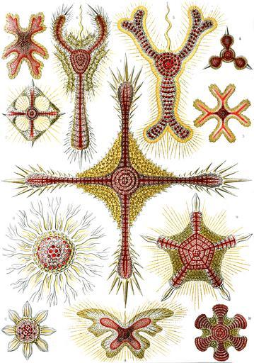 | Keywords: Haeckel Discoidea.jpg Enlarge image for index to numbers Histiastrum Boseanum <small> Haeckel </small> Histiastrum boseanum <small>Haeckel 1887</small> Stephanastrum quadratum <small> Haeckel </small> Stephanastrum quadratum <small>Haeckel 1887</small> Dicranastrum furcatum <small> Haeckel </small> Dicranastrum furcatum <small>Haeckel 1887</small> Rhopalastrum trispinosum <small> Haeckel </small> Dictyastrum trispinosum <small> Haeckel 1887 </small> Chitonastrum lyra <small> Haeckel </small> Amphirhopalum virchowii lyra <small> Haeckel 1887 </small> Euchitonia carcinus <small> Haeckel </small> Euchitonia sp Myelastrum dodecaceros <small> Haeckel </small> Myelastrum sp Myelastrum papilio <small> Haeckel </small> Myelastrum papilio <small>Haeckel 1887</small> Pentinastrum asteriscus <small> Haeckel </small> Spongodiscidae sp Hexinastrum geryonidum <small> Haeckel </small> Larnacillidae sp Heliodrymus dendrocyclus <small> Haeckel </small> Heliodiscidae sp Heliodiscus glyphodon <small> Haeckel </small> Heliodiscidae / Actinommidae sp Kunstformen der Natur 1904 plate 11 Discoidea see http //caliban mpiz-koeln mpg de/haeckel/kunstformen/high/Tafel_011_300 html here http //caliban mpiz-koeln mpg de/haeckel/kunstformen/high/Tafel_011_text_1_200 html here and http //caliban mpiz-koeln mpg de/haeckel/kunstformen/high/Tafel_011_text_2_200 html here creator Ernst Haeckel 1904 public domain due to age PD-old Kunstformen der Natur 1904 Radiolaria |