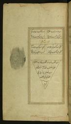 Keywords: Hafiz - Colophon - Walters W631172A - Full Page.jpg This folio from Walters manuscript W 631 contains a colophon in partly vocalized Arabic in the shape of a triangle The colophon gives the date of copying islamic 1539 946 Safavid ink pigments laid paper cm 22 13 accession number W 631 172A 82793 Henry Walters Baltimore date and mode of acquisition unknown Walters Art Museum Henry Walters Acquired by Henry Walters Transliteration place of origin Iran Walters Art Museum license 2D Divan by Hafez Safavid Walters MS 631 |
