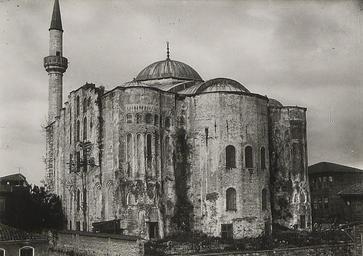 Keywords: salt araştırma saltaraştırma salt research saltresearch salt online saltonline gül camii gülcamii hagia theodosia kilisesi hagiatheodosiakilisesi ayia theodosia ayiatheodosia doğu roma dönemi doğuromadönemi adile sultan halk kütüphanesi adilesultanhalkkütüphanesi byzantine bizans ayakapı i̇stanbul istanbul gül mosque gülmosque hagia theodosia church hagiatheodosiachurch byzantine period byzantineperiod adile sultan public library adilesultanpubliclibrary outdoor architecture monochrome building skyline www.archives.saltresearch.org/R/QQHIB5N6USCTV72JLBC36ACKA... Hagia Theodosia Church, (Gül Mosque today), located in Ayakapı in İstanbul, is a religious building from the Byzantine period. It was built during the 10th or 11th centuries. After the conquest of İstanbul, the building served local shipyards as a warehouse for shiping equipment. It was converted into a mosque in 1499 and a minaret was added to the building during the period of Selim II. After being destroyed by fire in 1633, the building was renovated. A further, more extensive restoration was undertaken on the order of Mahmud II (1808-1839). After being used as the Adile Sultan Public Library for some years, the building is empty today. SALT Research, Photography Archive Gül Camii olarak bilinen Hagia Theodosia Kilisesi Ayakapı’da yer alır. Doğu Roma döneminden kalma yapının 10. ya da 11. yüzyılda inşa edildiği düşünülmektedir. Kilise, İstanbul’un fethinden sonra bir süre, Haliç’teki tersanelerin malzeme deposu olarak kullanıldı. 1499’da camiye çevrildi, II. Selim zamanında minaresi eklendi. 1633’te geçirdiği bir yangının ardından onarılsa da, geniş kapsamlı onarımı II. Mahmut zamanında (1808-1839) gerçekleştirildi. Bir dönem Adile Sultan Halk Kütüphanesi olarak kullanılan yapı bugün atıl vaziyette durmaktadır. SALT Araştırma, Fotoğraf Arşivi www.archives.saltresearch.org/R/QQHIB5N6USCTV72JLBC36ACKA... Hagia Theodosia Church, (Gül Mosque today), located in Ayakapı in İstanbul, is a religious building from the Byzantine period. It was built during the 10th or 11th centuries. After the conquest of İstanbul, the building served local shipyards as a warehouse for shiping equipment. It was converted into a mosque in 1499 and a minaret was added to the building during the period of Selim II. After being destroyed by fire in 1633, the building was renovated. A further, more extensive restoration was undertaken on the order of Mahmud II (1808-1839). After being used as the Adile Sultan Public Library for some years, the building is empty today. SALT Research, Photography Archive Gül Camii olarak bilinen Hagia Theodosia Kilisesi Ayakapı’da yer alır. Doğu Roma döneminden kalma yapının 10. ya da 11. yüzyılda inşa edildiği düşünülmektedir. Kilise, İstanbul’un fethinden sonra bir süre, Haliç’teki tersanelerin malzeme deposu olarak kullanıldı. 1499’da camiye çevrildi, II. Selim zamanında minaresi eklendi. 1633’te geçirdiği bir yangının ardından onarılsa da, geniş kapsamlı onarımı II. Mahmut zamanında (1808-1839) gerçekleştirildi. Bir dönem Adile Sultan Halk Kütüphanesi olarak kullanılan yapı bugün atıl vaziyette durmaktadır. SALT Araştırma, Fotoğraf Arşivi |