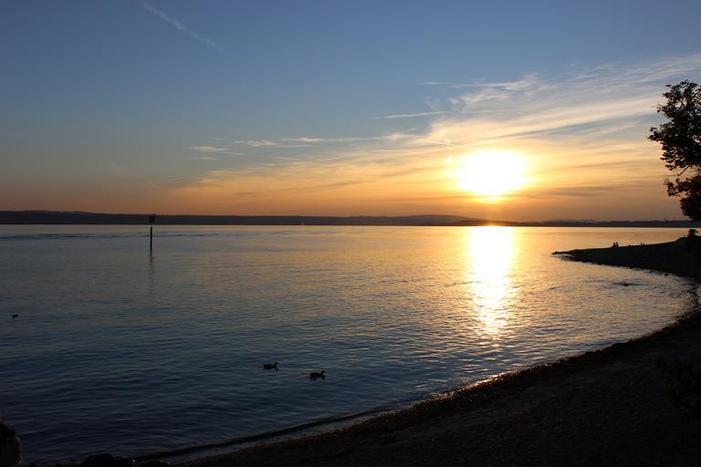 Keywords: hagnau lake constance sunset lake bank water constance beach mood abendstimmung landscape view sun mountains southern germany autumn germany baden württemberg nature