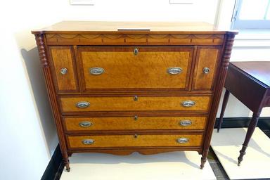 Keywords: Half sideboard with swag-and-tassel frieze, Windsor County VT, 1810-1815, cherry, pine, basswood, with mahogany and maple inlay - Bennington Museum - Bennington, VT - DSC08817.JPG en Exhibit in the Bennington Museum - Bennington Vermont USA This work is in the public domain because the artist died more than 70 years ago Photography was permitted in the museum without restriction 2015-02-28 13 41 48 own Daderot other versions PD-old-70 cc-zero Furniture in the Bennington Museum Furniture from Vermont |
