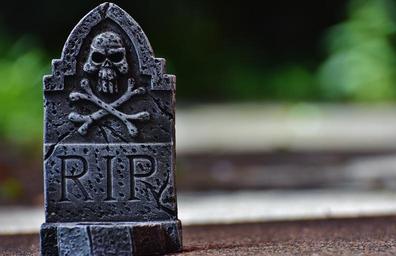 Keywords: halloween tombstone grey skull and crossbones creepy