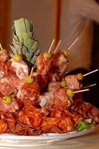 Keywords: ham sausage pineapple eat food meat wurstplatte substantial olive
