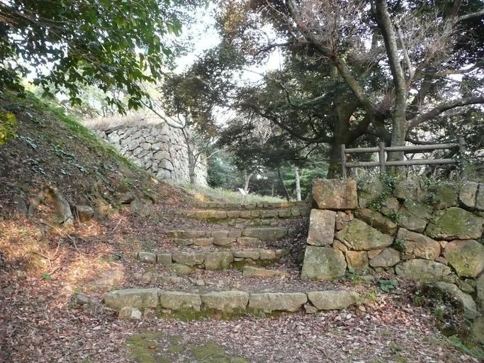 Keywords: Hamada castle sannomaru ishigaki1.JPG en 三の丸にある階段の石垣 自身で撮影 上 ジョー 2010年12 23日 Cc-zero Hamada Castle