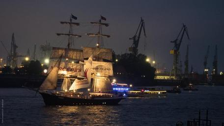 Keywords: hamburg night hafengeburtstag sailing vessel sail rigging ship masts wind germany port