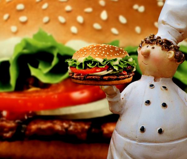 Keywords: hamburger cheeseburger cooking funny food preparation chef's hat fig sweet figures cook order call delicious eat cute