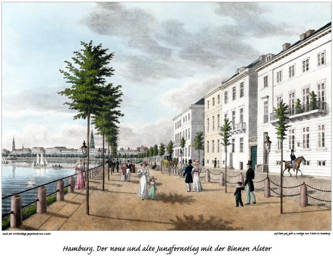 | Keywords: Hamburger-strassen-und-stadttore-im-19-jahrhundert-03.jpg de Neuer Jungfernstieg 1830 Die Zeichnung entstand kurz nach Einrichtung des Neuen Jungfernstiegs 1825 http //www hamburg de/bilder/hamburg-historisch/239460/hamburger-strassen-und-stadttore-im-19-jahrhundert html Christoffer und Peter Suhr 1830 Neuer Jungfernstieg Hamburg in the 1830s Gebrüder Suhr Buildings in Hamburg in art PD-old | ||||