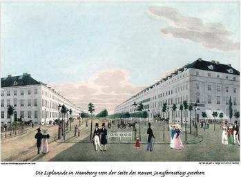 | Keywords: Hamburger-strassen-und-stadttore-im-19-jahrhundert-09.jpg de Esplanade von Osten 1830 Die Esplanade wurde nach dem Vorbild der Berliner Straße Unter den Linden als Prachtstraße und Flaniermeile angelegt http //www hamburg de/bilder/hamburg-historisch/239460/hamburger-strassen-und-stadttore-im-19-jahrhundert html Christoffer und Peter Suhr 1830 Esplanade Hamburg Hamburg in the 1830s Gebrüder Suhr Buildings in Hamburg in art PD-old | ||||