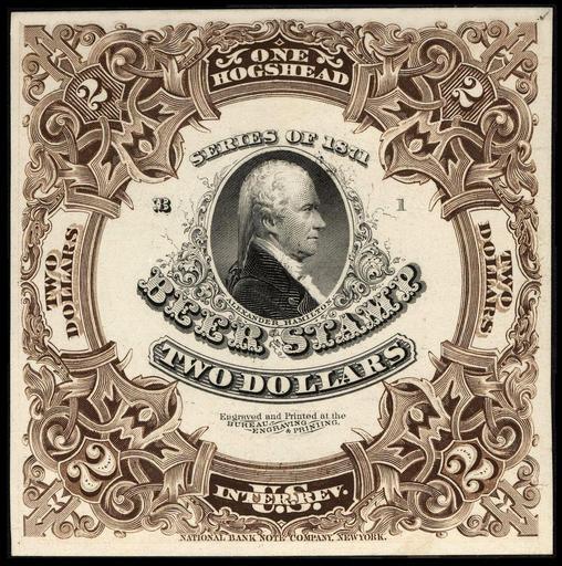 | Keywords: Hamilton Beer revenue stamp $2 Hogshead.JPG U S Revenue stamp for beer tax 2 per Hogshead 1871 United States Government; Department of Internal Revenue; Smithsonian National Postal Museum Frame printed by National Bank Note Company; Engraved black vignette printed by Bureau of Engraving and Printing other versions <table><tr> <td>thumb 200px <center>Sherman Beer Stamp 1871</center> <td>thumb 200px <center>McCullouch Beer Stamp 1871</center> <td>thumb 200px <center>Lincoln Beer Stamp 1871</center> <td>thumb 200px <center>Jackson Beer stamp 1871</center> </tr></table> PD-USGov Uploaded with UploadWizard Revenue stamps of the United States Stamps of the United States 1870-1880 Alcohol tax stamps Revenue stamps of the U S Internal Revenue Service Revenue stamps of the U S Internal Revenue Service Beer Stamp Series 1871 Hamilton 06 36 9 October 2014 UTC Hamilton Beer revenue stamp 2 Hogshead JPG |