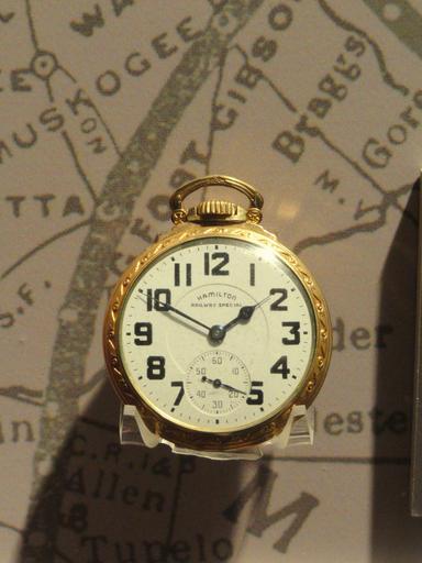 | Keywords: Hamilton Railway Special - Railroad watch - KC Rail Experience - Kansas City, MO - DSC07850.jpg en Exhibit in the KC Rail Experience museum Union Station Kansas City Missouri USA Photography was allowed in this museum without restriction 2011-11-01 own Daderot cc-zero Uploaded with UploadWizard KC Rail Experience Hamilton Watch Company watches | ||||