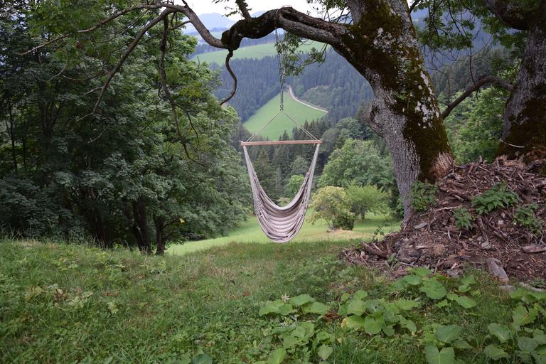 Keywords: hammock holiday forest meadow green alm hut idyllic nature blossom bloom plant away