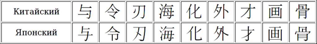 | Keywords: Han-unification-example.png en A sample of Han characters that should have a different look in Chinese and Japanese writing ru П име китайских символов имеющих азное наче тание в китайском и японском письме Own User Monedula 2008-07-24 Comparisons of different sets of Chinese characters |