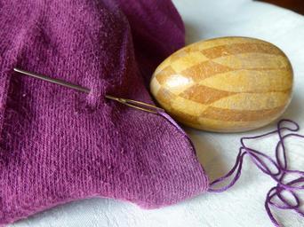 Keywords: hand labor stuff repair stopfei needle thread stockings pantyhose hole patch egg twist wood wooden egg sew