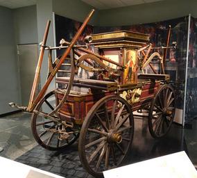 | Keywords: Hand-pumped fire engine built by Betts, Harlan, & Hollingsworth, used in Wilmington Delaware, c. 1842, view 1 - National Museum of American History - DSC00327.jpg en Exhibit in the National Museum of American History Washington DC USA Photography was permitted in the museum without restriction 2015-03-27 11 47 01 own Daderot other versions cc-zero Betts Harlan Hollingsworth fire engine National Museum of American History | ||||
