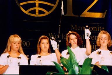 Keywords: christopher dock high school handbell choir christopherdockhighschoolhandbellchoir mennonite world conference winnipeg manitoba canada mennoniteworldconferencewinnipegmanitobacanada groupshot people indoor Caption: Part of the Christopher Dock High School Handbell Choir of Pennsylvania, USA. Citation: Mennonite World Conference. Twelfth Mennonite World Conference, 1990, Winnipeg, Canada. Slides by T. Klassen; Script by John Dyck. X-9 Box 52 Folder 4 Slide 76. Mennonite Church USA Archives - Goshen. Goshen, Indiana. Caption: Part of the Christopher Dock High School Handbell Choir of Pennsylvania, USA. Citation: Mennonite World Conference. Twelfth Mennonite World Conference, 1990, Winnipeg, Canada. Slides by T. Klassen; Script by John Dyck. X-9 Box 52 Folder 4 Slide 76. Mennonite Church USA Archives - Goshen. Goshen, Indiana. |