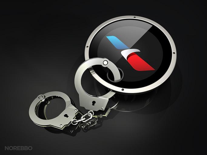 | Keywords: american airlines americanairlines american aa logo handcuffs shackle bound restraint connected prisoner restriction brand new logo newlogo render rendering norebbo.com norebbocom 3d rendering 3drendering illustration airline travel circle round black background 3d illustration of a pair of large silver handcuffs attached to a gray disc with an American Airlines logo over a gray reflective surface 3d illustration of a pair of large silver handcuffs attached to a gray disc with an American Airlines logo over a gray reflective surface |