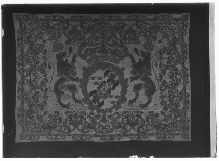 Keywords: Handhästtäcke, svenska riksvapnet. Tillhört Karl XI (1655-1697). Beställda i Frankrike - Livrustkammaren - 640-negative.tif Rektangulärt täcke av blått kläde med applikationsbroderi i flera färger samma typ somnr 4046 Sytt av två stycken b 690 mm och 1060 mm Juelichs lejon av brun yllekypert medullgarnsbroderier i vitt och gult Stora kronan har reliefbroderier i flera färger original caption - 1671 1683 broadcloth Färg blå material kläde size mm 2495 1750 LRK Karl XI av Sverige place of origin original filename LN_B03520_006400 40652 inventory number LRK 4047 640 CC0 Handhästtäcke svenska riksvapnet Tillhört Karl XI 1655-1697 Beställda i Frankrike - Livrustkammaren - 640 tif |