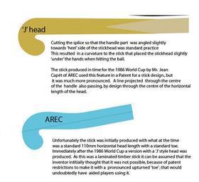 Keywords: Handle Curve & AREC.jpg The angle to the 'heel' side of a hocky stick due to the angle of insertion of the handle part to the head part in timber constructions The use by Mr Jean Capet of this feature to patent a design where the centre line of the handle could be projected through the centre of the head of the stick 2006-09-24 own assumed Martin ZigZag Field hockey sticks |