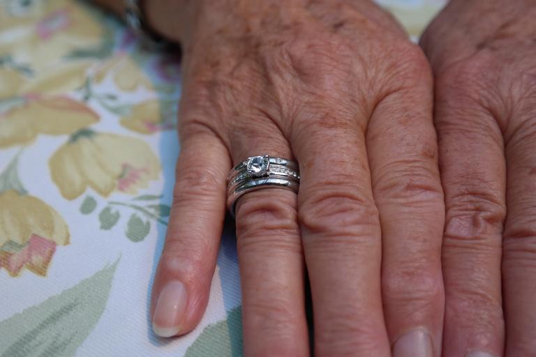 Keywords: hands woman jewellery finger ring finger ring old aged skin fingernails jewels diamond expensive valuable ring finger