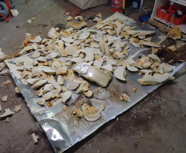 Keywords: Handyman project to disassemble hot water heater 20.JPG en The outer skin of a 15-year old hot water heater with bits of insulation on top of it on the floor of a basement Photo from a project to remove a bulky heavy non-needed 75 gallon hot water heater from a basement 2013-02-25 22 01 37 own Tomwsulcer cc-zero Uploaded with UploadWizard Water heating devices Handyman photos by tom sulcer