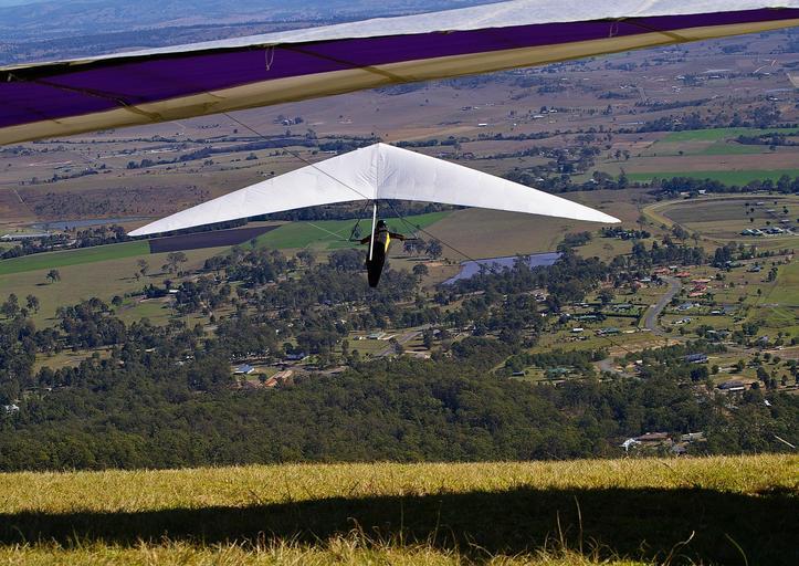 Keywords: hang-gliders gliders flying mountain top high scenery rural australia