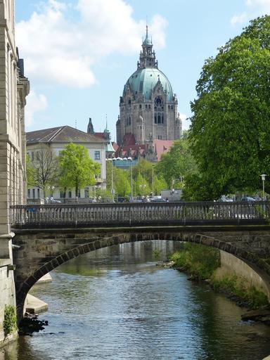 Keywords: hanover lower saxony old town historically park river castle mirroring architecture building bridge leine castle town hall