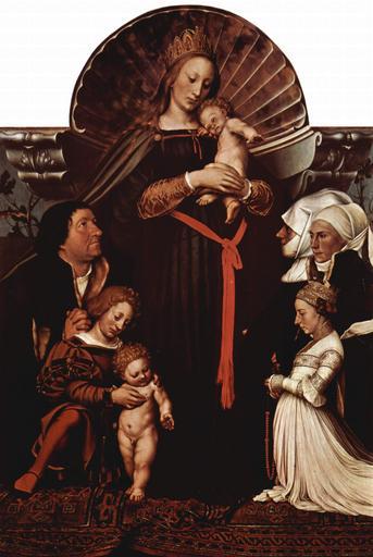 Keywords: Hans Holbein d. J. 016.jpg Artwork Creator Hans Holbein d J de Madonna des Basler Bürgermeisters Jakob Meyer Darmstädter Madonna mit Stifterporträts 1526-1530 Tempera on wood cm 146 5 102 de Sammlung der Fürsten von Hessen und Rhein Schloß Darmstadt de Auftraggeber Jacob Meyer Darstellung mit seinem Sohn links und seiner Frau und den Töchtern rechts The Yorck Project 10 000 Meisterwerke der Malerei DVD-ROM 2002 ISBN 3936122202 Distributed by DIRECTMEDIA Publishing GmbH http //mail wikipedia org/pipermail/wikide-l/2005-April/012195 html PD-old-100 PD-Art-YorckProject Darmstädter Madonna |