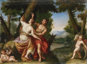 Keywords: Hans Rottenhammer (Nachfolger)- Angelica und Medoro.jpg follower of century 17 Oil copper cm 34 5 46 http //www invaluable com/auction-lot/hans-rottenhammer -follower-of -angelica-and-medo-1128-c-ac44879221 invaluable com object history Private collection Italy credit line a scene from Ariost´s Orlando Furioso It is based on an etching by Egidius Sadeler after a painting by Carlo Caliari Barbieri collection Padua The painting is probably by an artist influenced by Hans Rottenhammer accession number http //www arcadja com/auctions/en/private/lempertz/2012/11/17/1450537925/ Lempertz Nov 17 2012 lot 1128 via ARCADJA auction results PD-old-100 DEFAULTSORT Rottenhammer Hans; Angelica und Medoro; Lempertz 2012 Hans Rottenhammer Angelica and Medor Images from Kunsthaus Lempertz |