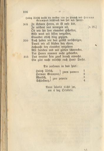 Keywords: Hans Sachs Goetze Bd2 S104.jpg 2 103 105 Goetze - Sämmtliche Fastnachtspiele von Hans Sachs - Band 2 Der gestohlne Fastnachthahn