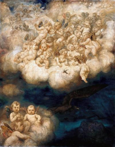 Keywords: Hans Thoma - Engelwolke (1878).jpg Artwork Creator Hans Thoma 1878 oil canvas cm 85 67 5 Alte Nationalgalerie 02531990 object history 1909 Regierungsrat Dr Ernst Magnus Berlin <br/> langswitch Schlesisches Museum Wrocław Śląskie Muzeum we Wrocławiu <br/>1953 Freundschaftsgeschenk der Volksrepublik Polen an die DDR <br/>1954 à berweisung des Ministeriums für Kultur credit line HTh 78 ~ lower right monogram / date accession number A III 406 http //en gallerix ru/storeroom/273529507/N/9189/ gallerix ru PD-old-auto-1923 1924 DEFAULTSORT Thoma Hans; Cloud of Angels 1878 Alte Nationalgalerie Mythological paintings by Hans Thoma Paintings in the Alte Nationalgalerie 1878 paintings |