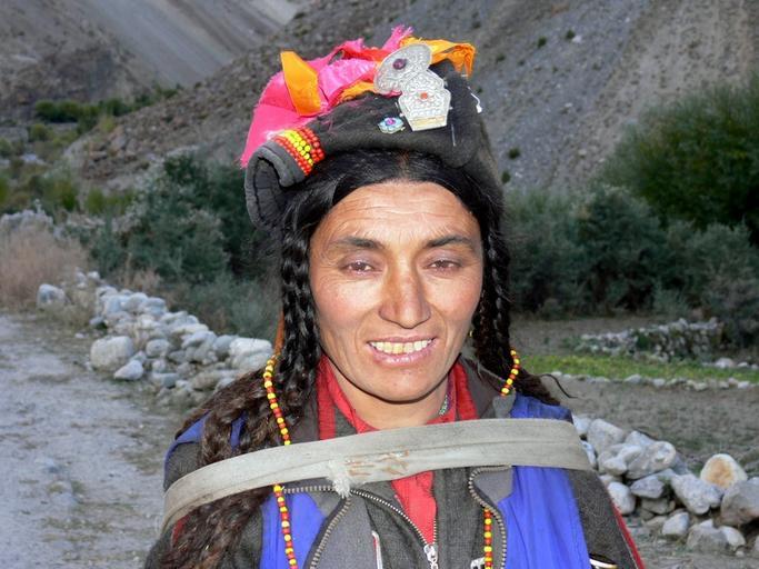 Keywords: Hanu tribe.jpg A tribe in Hanu also called a Hanupa in local terms They live in almost sheer isolation in villages Dah and Hanu which can be accessed only by a really bumpy road ride which skirts a sheer cliff face with the river flowing fast and furious below Then one could trek up a goat-track and experience what it means to climb lofty mountains As one suddenly round a bend in the track one is confronted with terraced fields of barley studded with apricot trees a smattering of stone huts and irrigation ditches covered with flagstones which are actually pathways The story according to its warm and handsome people goes thus when their forefathers chanced upon these villages on their expedition to find a new land for their tribe seeing its inhospitable nature they resolved to come back in Spring When they returned as promised they saw barley seeds dropping from the warm straw and insulating their shoes This phenomenon decided them to move here with their entire tribe Gods and all The interesting story revolving around their Gods the 'Lahs' is that they were the only ones who held the secret to fertility but since all they were interested in was dance dance and dance the 'Dahs' discovered this secret by accident The enraged Lahs then left the place with a huge explosion leaving a gaping hole in the ground Own 2006-09-24 Alin Dev People of Ladakh Women of Jammu and Kashmir Portrait photographs of women at bust length |