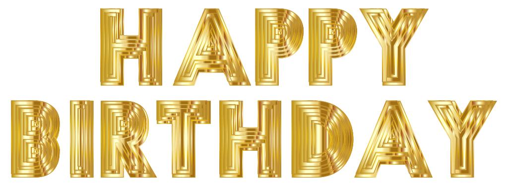 Keywords: happy birthday celebration party occasion festive colorful prismatic shiny metallic chromatic gold typography type text words art